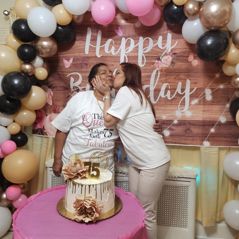 Libertad Shanlatte Montás le da un beso a Damaris Altagracia Montás de Ramírez por su fiesta de cumpleaños 75.EXTERNA
